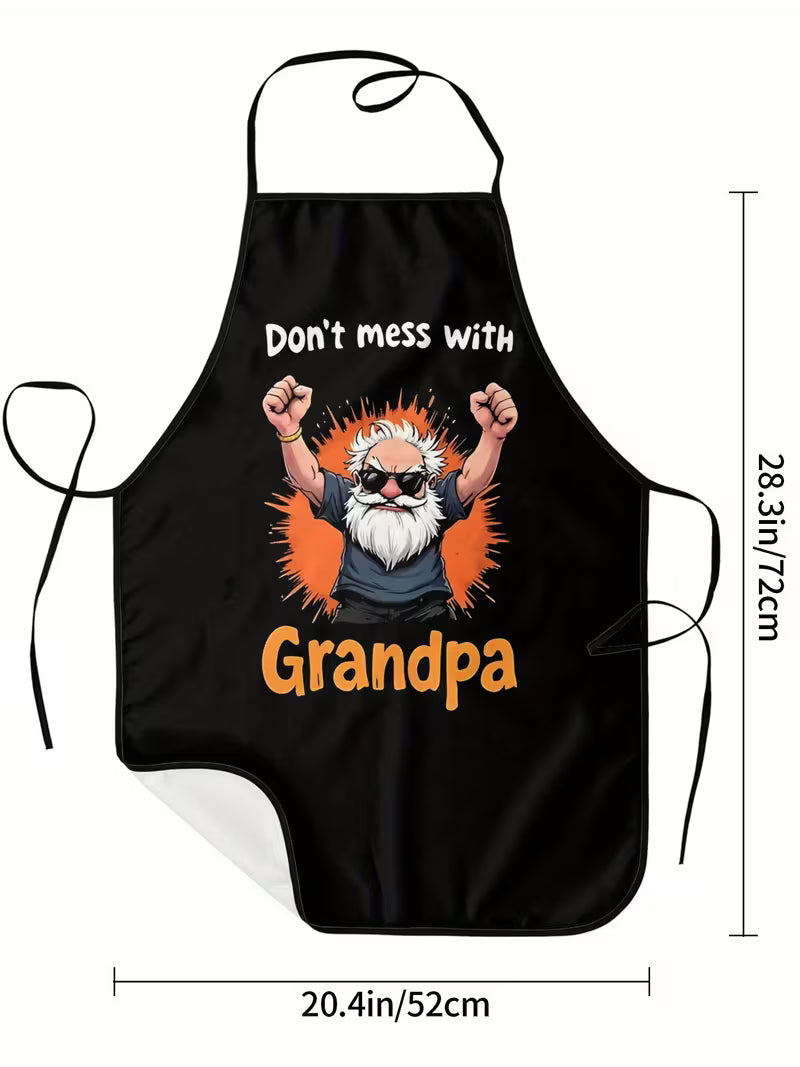 - Style: adjustable kitchen apron with “Don’t Mess With Grandpa” print