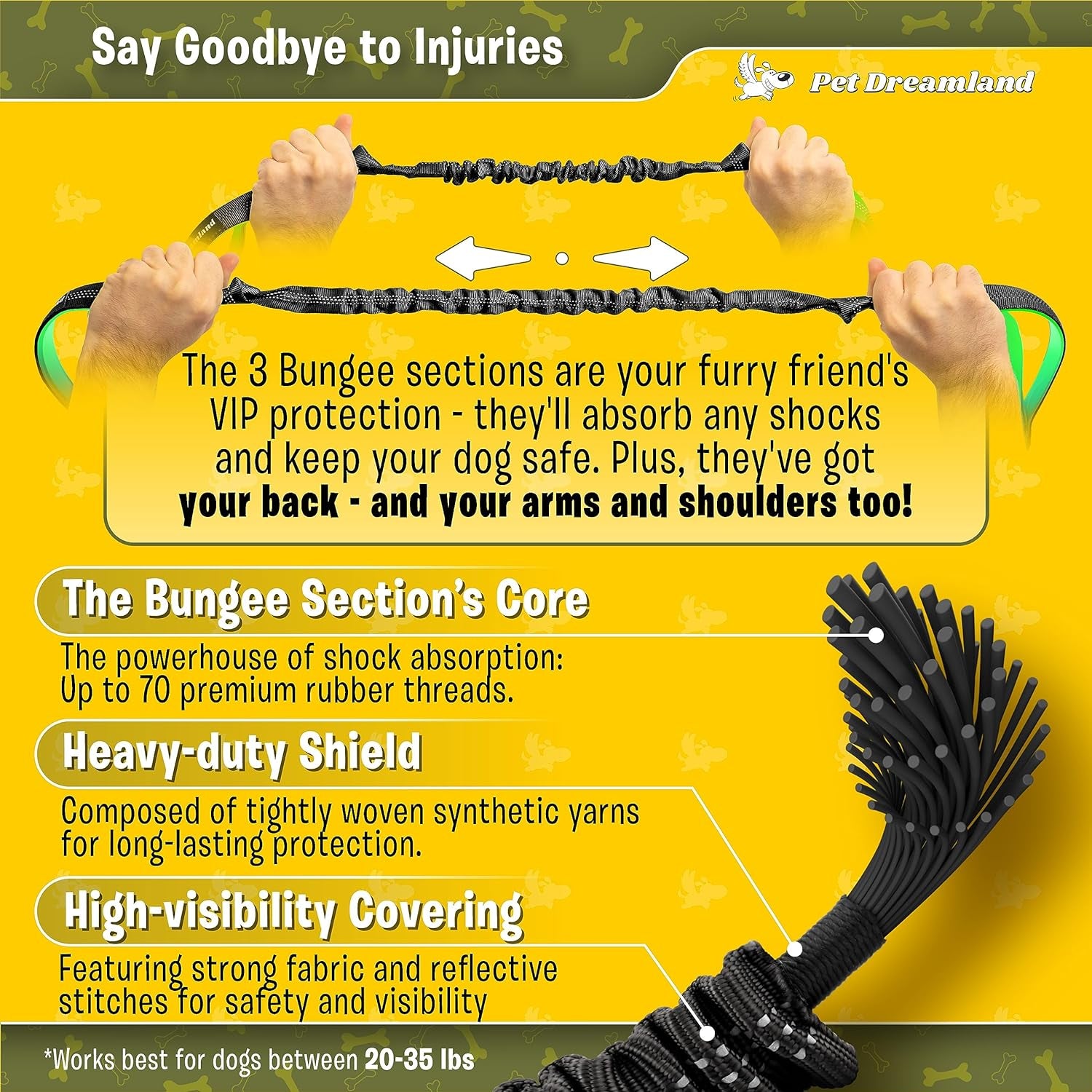 While other Hands-Free Dog Leash has one or two bungees, Pet Dreamland Leash has THREE. In any combination you use - short, medium, long, as a Hands-free Leash, or as a classic Dog Leash, your dog will always be protected by at least one bungee, preventing choking or other long-term health issues.