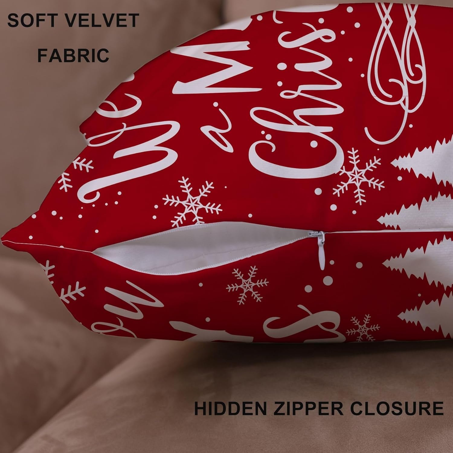 • Merry Christmas Pillow Covers 22x22 – Set of 4 Holiday Couch Decor