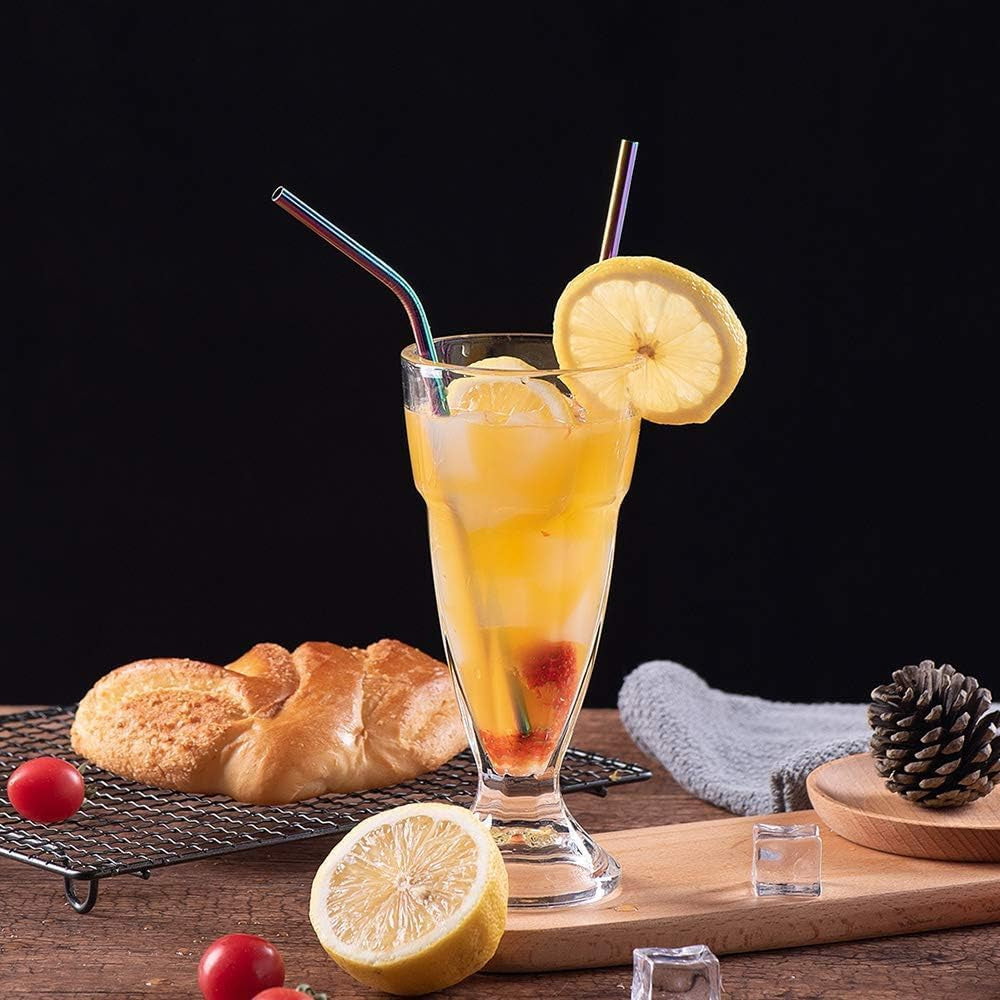 • FIT FOR ALL SIZE TUMBLERS: 4 straight rainbow stainless steel straws of 8.5” and 4 bent rainbow stainless steel straws of 8.5”for 20oz tumblers tumblers. Perfect for you to enjoy your cold bevarage, sipping cocktail, coffee, ice tea, cappuccino etc by these colorful metal straws.