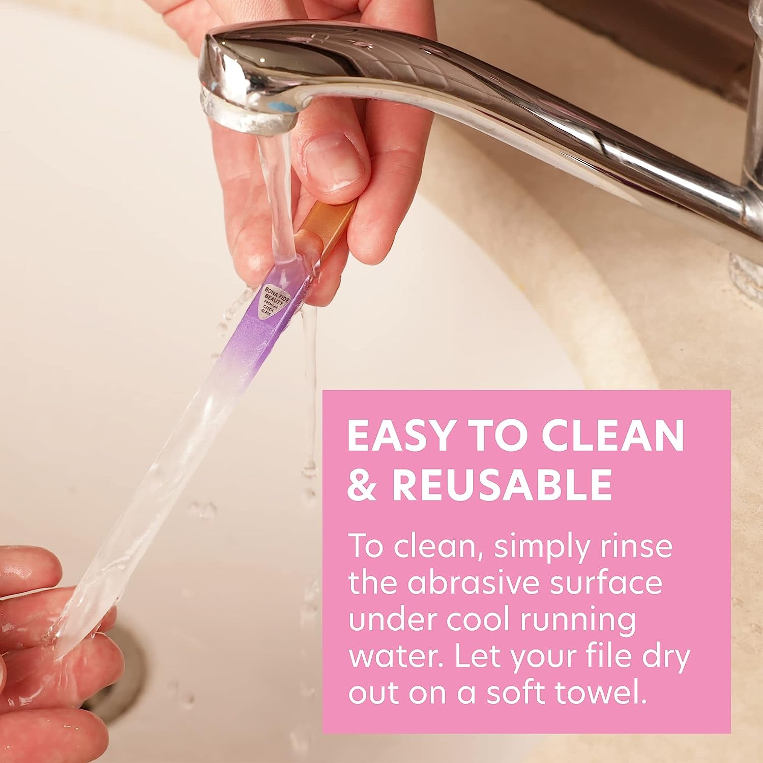 Expertly shape nails with precision and efficiency. Bona Fide Beauty Czech glass nail files can be filed comfortably in both directions!