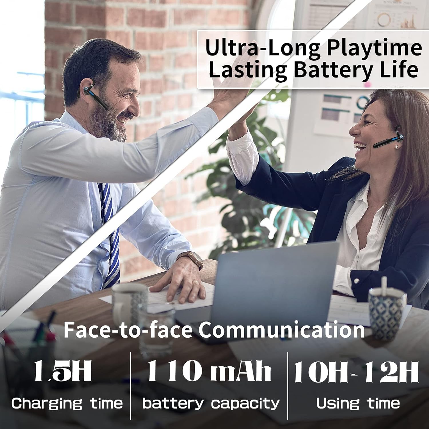 The bluetooth earpiece can be used for at least 10 hours after only 1.5 hours of charging, handsfree bluetooth headset with microphone are widely used in long-distance business trips / work calls / conference calls / business communications, etc. The long standby time makes you no longer worry about the bluetooth headset for cell phones running out of power.
