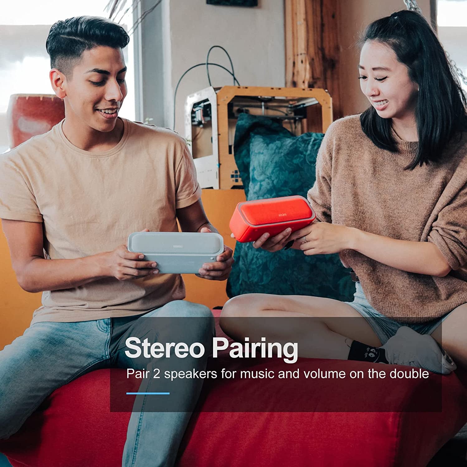 • Wireless Stereo Pairing: Bring a bolder sound together for a bigger party. Connect two SoundBox Pro wireless speakers via a single device for immersive stereo sound and double the volume.