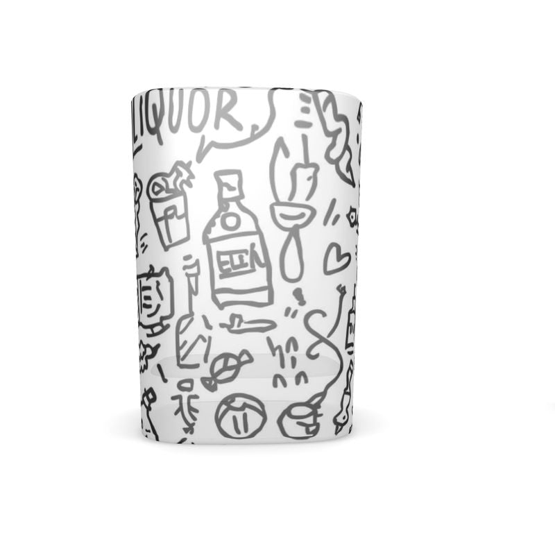 Pub Culture Doodle Design Raise a toast to creativity and good company with these custom square vodka glasses, featuring playful doodles inspired by classic pub culture. Each glass has a chic frosted appearance that adds a touch of fun and sophistication to any occasion—from lively nights with friends to relaxed celebrations at home. Available in sets of 2, 4, or 6, you can choose to keep the design consistent or personalize each glass individually. Crafted with care and sustainably printed, every set brings together artistry, craftsmanship, and style. For an added touch of luxury, an optional printed gift tin makes these glasses perfect for gifting or display. Product Highlights: Sets of 2, 4, or 6 custom square vodka glasses Chic frosted glass appearance with doodles inspired by pub culture Option to print the same or unique designs on each glass Optional printed gift tin available Dimensions: 1.8" x 1.7" x 2.5", holds 2 fl oz Sustainably printed and handmade to order Quick shipping to all U.S. states